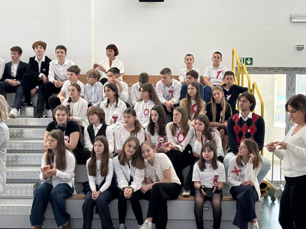 Wspólne świętowanie niepodległości to dla naszej społeczności wyjątkowy moment – o godz. 11:11 cała szkoła wzięła udział w ogólnopolskiej akcji Ministerstwa Edukacji Narodowej „#SzkołaDoHymnu”, śpiewając razem z zaproszonymi Gośćmi cztery zwrotki „Mazurka Dąbrowskiego”.