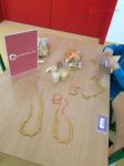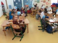 Przez zabawę i ćwiczenia wyjaśniliśmy z jakich zbóż powstaje np. kasza jaglana, gryczana, manna, mąka, różne rodzaje płatków. Dzięki ocenie organoleptycznej rozróżnią rodzaje kasz nawet z zamkniętymi oczami :) Największą frajdę oczywiście sprawiło im robienie biżuterii z makaronów i obrazków z kasz.